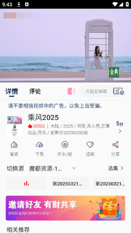 内置便捷的内容分享通道,允许用户将喜爱的影片或剧集信息一键转发至主流社交平台,实现观影体验的扩散与交流。