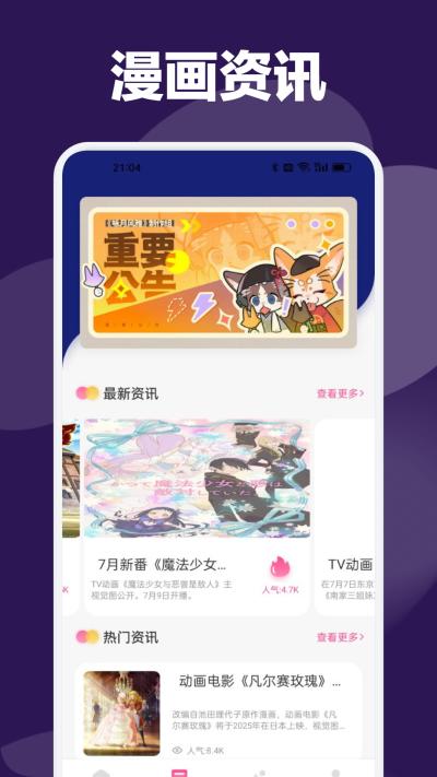 依托高效的资讯抓取与编辑体系,能够第一时间推送业界新闻、新番动态及作品情报,帮助用户紧跟动漫潮流前沿。