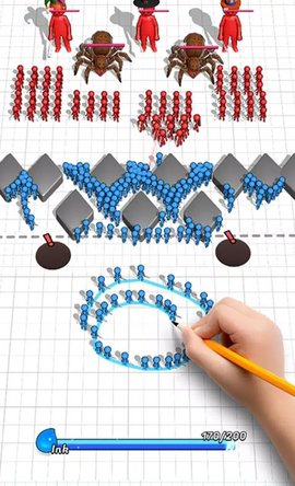 战斗过程中,墨汁的管理至关重要。每次绘制路径或召唤单位都会消耗墨汁,而墨汁会随时间缓慢恢复。避免在单一回合内耗尽所有资源,需为突发状况预留余地。绘制进攻路径时,应优先考虑集火消灭高威胁目标,或利用路径引导己方单位绕后攻击敌方脆弱的后排。注意单位间的协同,让坦克单位吸引火力,为输出单位创造安全的攻击环境。