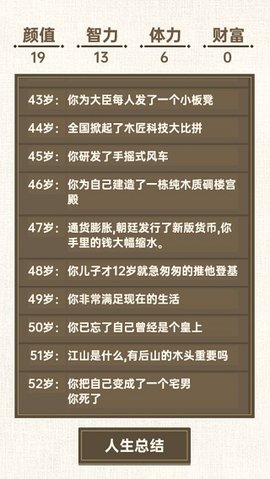 转世皇帝模拟器以其精巧的人生沙盒设计,在模拟养成品类中脱颖而出。游戏成功地将厚重的历史背景与轻快的放置玩法相结合,既保留了角色成长与故事探索的深度,又通过高随机性事件降低了操作负担,营造出闲庭信步间,阅尽百态人生的独特韵味。其最突出的价值在于对可能性的极致呈现——没有标准答案,每一次属性分配、每一个事件抉择都在编织全新的命运图谱。尽管美术表现偏向简约,但海量的文本内容与严谨的因果逻辑构建了足够坚实的沉浸世界。对于喜爱思考、享受规划并热衷于挖掘多结局的而言,作品提供了持续而富有深度的娱乐体验,堪称一部可互动的个人史诗。