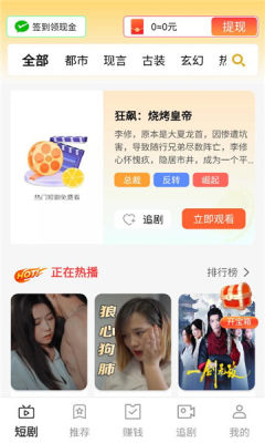 免费短剧全看红包版是一款融合了短剧娱乐与任务激励机制的移动端软件,用户能够免费观看海量短剧内容,并通过完成签到、观看广告等日常互动行为积累虚拟金币,最终将金币兑换为实际的红包奖励,实现了娱乐与收益的有机结合。