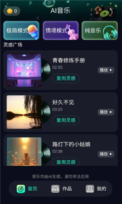内置流行、电子、摇滚、爵士等多种曲风模板,满足不同场景与审美需求。