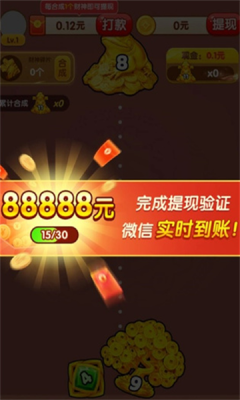 财神临门红包版是一款融合了经典合成玩法的休闲益智类手机软件,以传统吉祥元素为背景,通过合成金饰玉器等物品达成目标,从而获得激励。其核心机制易于理解,画面风格喜庆精致,适合在碎片化时间中体验合成与收集的乐趣,为日常生活增添一抹轻松愉悦的色彩。