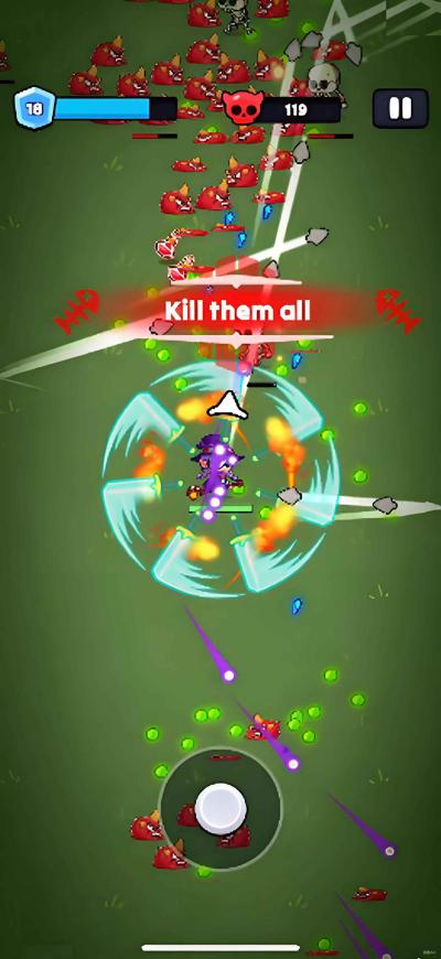 冒险伊始,点击起始界面提示即可踏入这片奇异废土。核心移动依赖于屏幕底部的虚拟摇杆,灵敏的操控是规避伤害、占据有利地形的根本。面对袭来的敌群,需保持移动,切忌陷入包围,利用地形进行周旋是为上策。