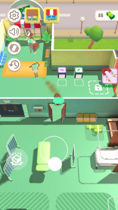 通过治疗积累资金与经验,解锁先进医疗设备并雇佣助手,逐步扩大医院规模。