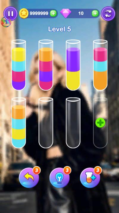 顽趣倾注是一款融合了逻辑解谜与色彩美学的益智游戏,其核心玩法围绕液体分类与空间规划展开。需要将多个装有混合颜色液体的玻璃试管,通过倾倒操作,最终使每个试管内仅剩单一纯净的色彩。规则简明却蕴含深度,关卡设计由浅入深,逐步引导锻炼策略思维与步骤预判能力,在宁静而专注的氛围中,享受破解谜题的成就感与智力提升的乐趣。