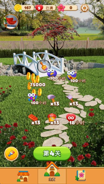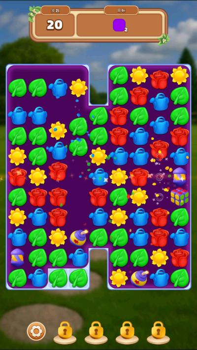 核心机制将经典三消玩法与花园建设深度结合,每一局消除挑战的胜利果实都直接转化为装点庭院的砖瓦与花种。