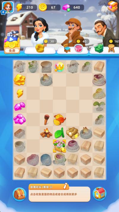 操作方式直观易上手。只需通过触摸或点击屏幕,拖动地图上的物品进行移动。当两个相同且可合并的物品相邻时,系统会给出提示,确认后即可完成合成,生成新的物品。屏幕下方通常会显示当前可完成的任务列表,建造一座风车或收集10个苹果。点击任务可以查看详细要求和奖励。完成任务是获取金币、新图纸和特殊材料的主要途径,这些资源对于解锁新区域和加速建设至关重要。