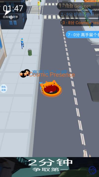 当体积增长到足以吞噬汽车乃至小型建筑时,战略重心需从单纯发育转向攻防一体。此时地图上的竞争趋于白热化。需要敏锐观察小地图,识别其他黑洞的位置与体积趋势。面对体积相近的对手,可以尝试利用建筑群作为掩护,进行迂回或设伏。面对明显大于自身的黑洞,则应果断远离,利用狭窄街道或复杂地形进行规避。记住,生存下去比冒险进攻更为重要。