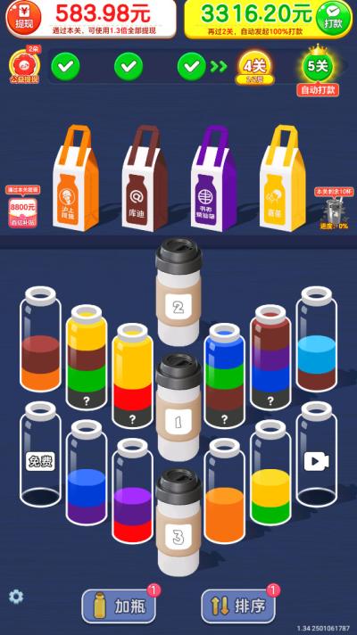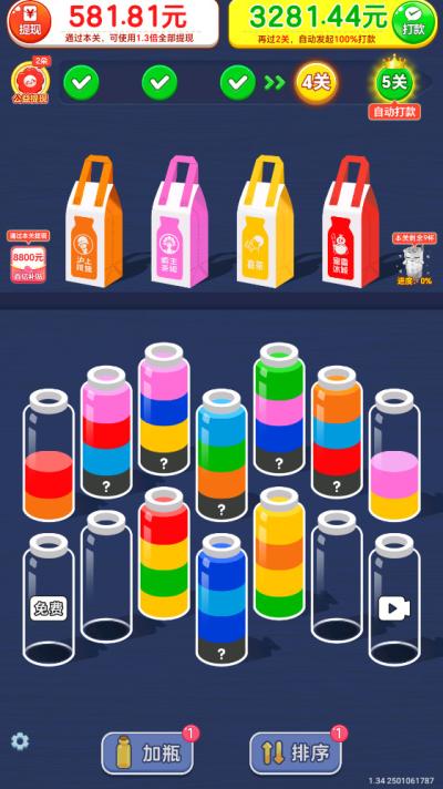核心目标是整理混乱,实现秩序。每一局开始,屏幕会呈现数个装有不同颜色、不同容量液体的试管,以及少量空试管作为缓冲空间。的主要操作是选择源试管,再点击目标试管,将其顶部的液体单元进行转移。转移必须满足目标试管为空,或其顶部液体颜色与待转移液体一致且拥有足够空间。成功的排序意味着所有同色液体被汇集到同一支试管内,该试管被完全填满。