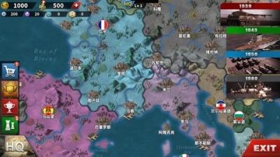 在沙盘式世界地图上,可以自主选择进攻路线与发展策略,没有固定剧本限制。
