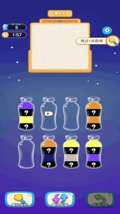 主要目标是将所有试管中的彩色液体按颜色进行分类和清空。通过点击一个试管选择液体,再点击另一个试管进行倾倒,使同色液体聚集。当同一试管内连续聚集足够数量的同色液体时,们便会自动消除,腾出空间。整个过程没有步数限制,但需要充分利用物理特性,避免将所需颜色液体沉入底部而无法移动。