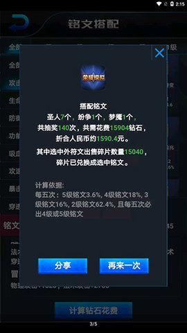 核心体验围绕夺宝、铭文与搭配计算三大模块展开。进入主界面后,用户首先接触的是夺宝抽奖区域。这里模拟了游戏内获取稀有英雄与皮肤的经典抽奖方式,点券夺宝。选择心仪的目标奖品后,启动抽奖流程,系统将模拟真实概率随机呈现结果。无论是否获得目标,过程本身即是对官方概率模型的一次生动认知。