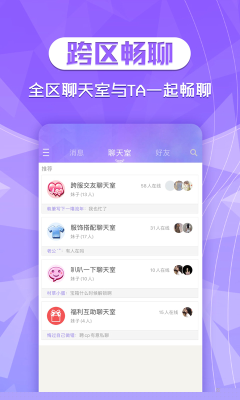 整合了跨服务器的聊天室功能,实现了不同大区间的无障碍沟通,便于兴趣交友与团队组建,拓展了的社交网络边界。