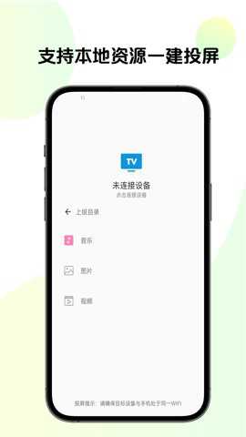直接读取手机本地存储的照片、视频及音乐文件,生成可视化列表供用户浏览选择,一键即可将选中的文件在大屏幕上播放,方便家庭聚会分享回忆。