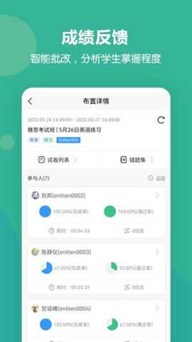 提供实时更新的作业完成状态看板,教师可清晰查看未提交、已提交、待批改的学生名单,及时进行提醒与督促,确保教学环节闭环。