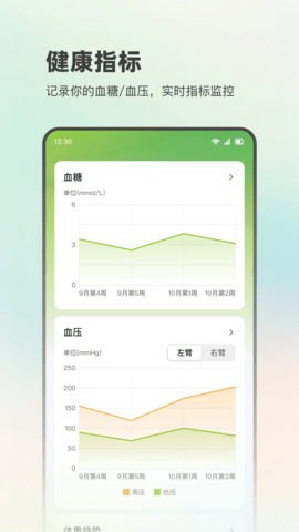 支持血压、血糖等核心指标的定期录入与可视化图表展示,帮助用户清晰把握数值波动与长期变化趋势,为就医诊断提供连续性的数据参考。