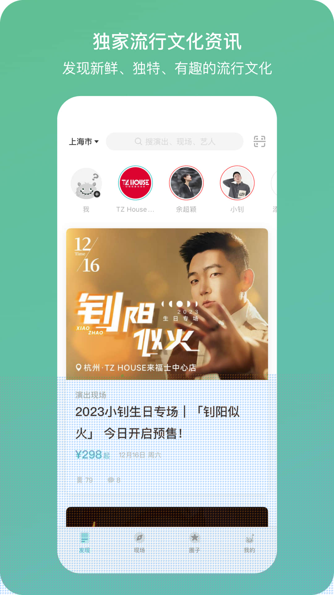 在软件的发现活动板块浏览演出列表,选择心仪的活动后,可直接进入订票页面完成在线选座与支付,电子票将保存在软件内。