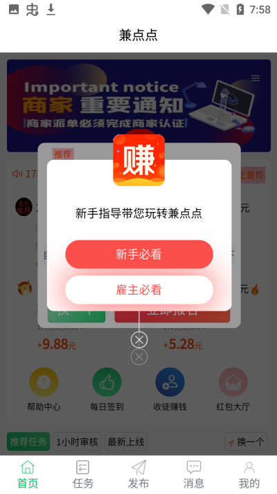 在本站下载并完成注册后,进入任务大厅浏览。建议新用户优先选择标注为新手推荐或难度较低的任务,仔细阅读要求后点击接取,按照指引步骤完成即可。