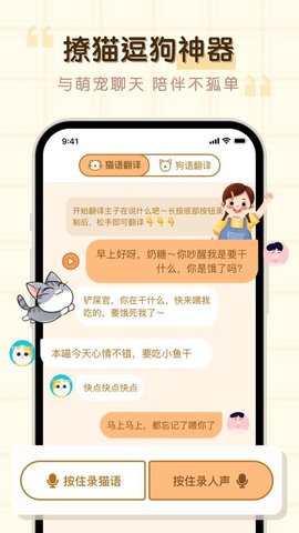 提供文字翻译,还可通过合成技术模拟宠物语音进行回应,创造一种新颖的、带有趣味性的双向沟通体验,增强了交互的沉浸感与生动性。