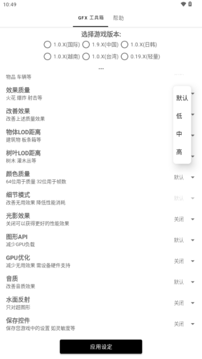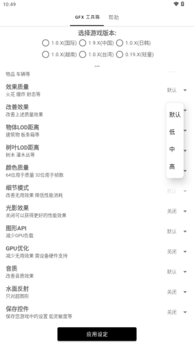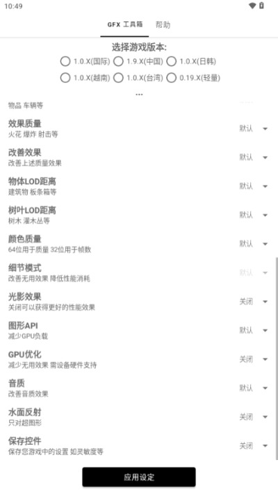 成功部署gfx工具箱助手后,用户的核心目标是在不触发安全机制的前提下,最大化和平精英的视觉保真度与操作顺滑度。首要步骤是准确选择对应的游戏服务器客户端,错误的版本匹配将导致设置无法生效。进入主配置界面后,建议优先处理帧率与分辨率这两项对体验影响最直接的参数。将帧率设定为设备散热所能承受的最高值,90帧或120帧,能从根本上改善交战时的跟枪手感与视角转动流畅性。
