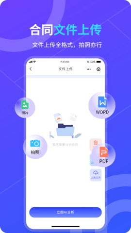 支持上传PDF、Word以及TXT格式的文档进行合同审阅。为保证最佳的解析效果,建议上传清晰、文字可选的PDF或Word文档。