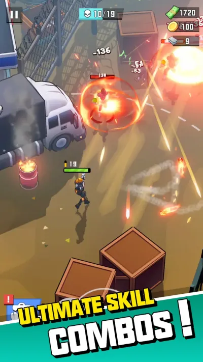 在战斗的核心循环中,的首要目标是生存并完成关卡设定的各类任务,歼灭所有敌人、守护特定目标或击败守关的首领。操作上采用直观的双摇杆控制,左侧虚拟摇杆负责角色移动,右侧则集成了射击、瞄准以及技能释放按钮。通过灵活的走位规避弹道,并抓住敌人攻击的间隙进行反击,是基本的作战逻辑。战场中散布的可互动元素,如油桶或电子设备,引爆后能产生大范围伤害,是快速清理集群敌人的有效手段。