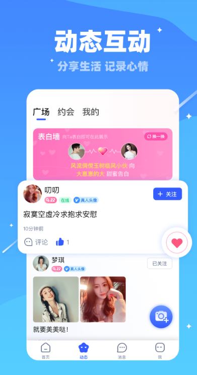 随时发布图文动态,记录并分享生活瞬间,通过内容展示个人魅力,吸引志趣相投者的关注与互动。