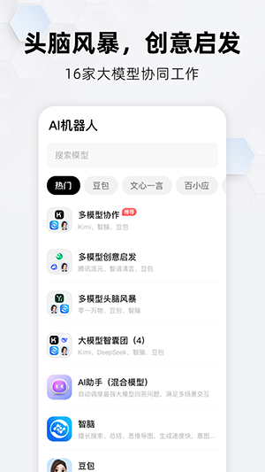 整合了包括GPT、文心一言、通义千问等在内的16个主流AI模型,可根据任务需求自动调用或组合不同模型,发挥各自优势,实现从浅层查询到深度分析的全链路处理。
