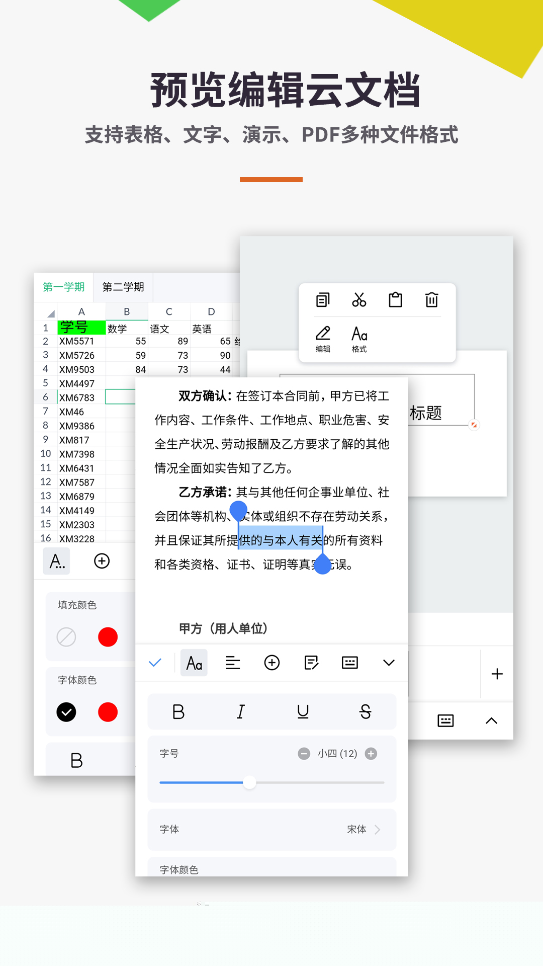 支持创建与编辑包含合并单元格、公式及样式的复杂表格。通过触控手势可调整列宽行高,并能进行基本的数据运算。