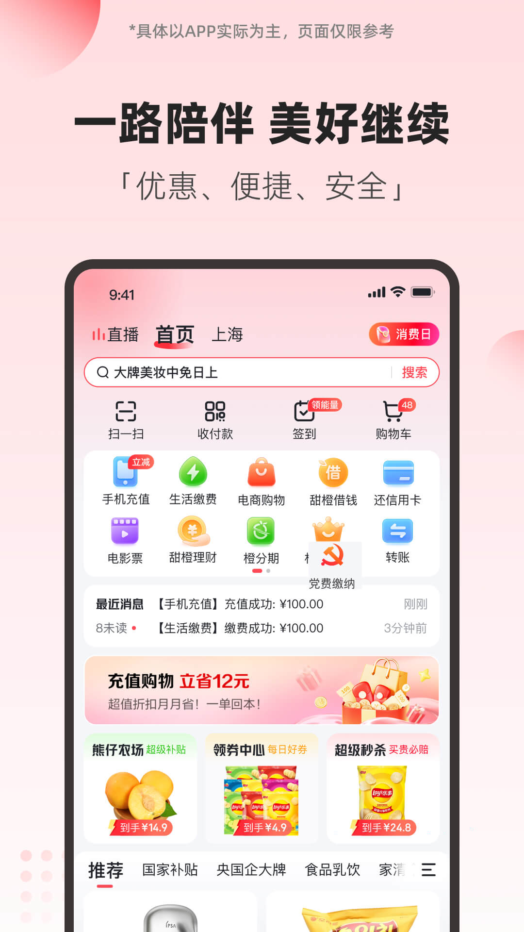 在加油、超市、外卖等日常场景持续投入真金白银的补贴,折扣和立减活动规则清晰,优惠获得感强。