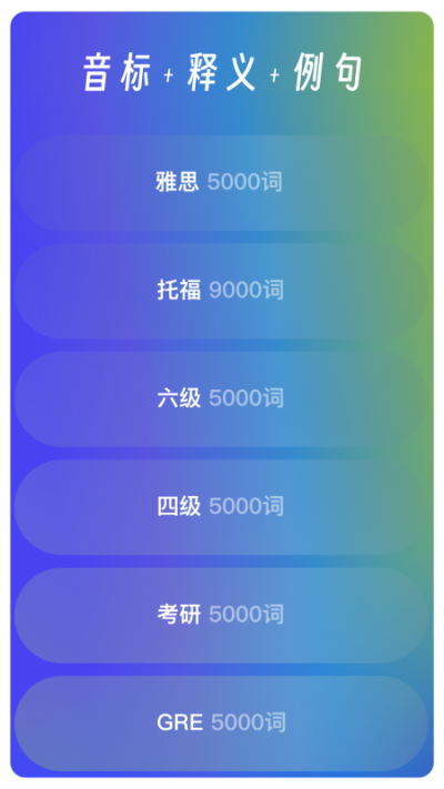 词库内容直接对接主流英语能力测试,帮助学习者将有限的时间和精力集中于最高频、最有效的词汇上,备考方向明确。