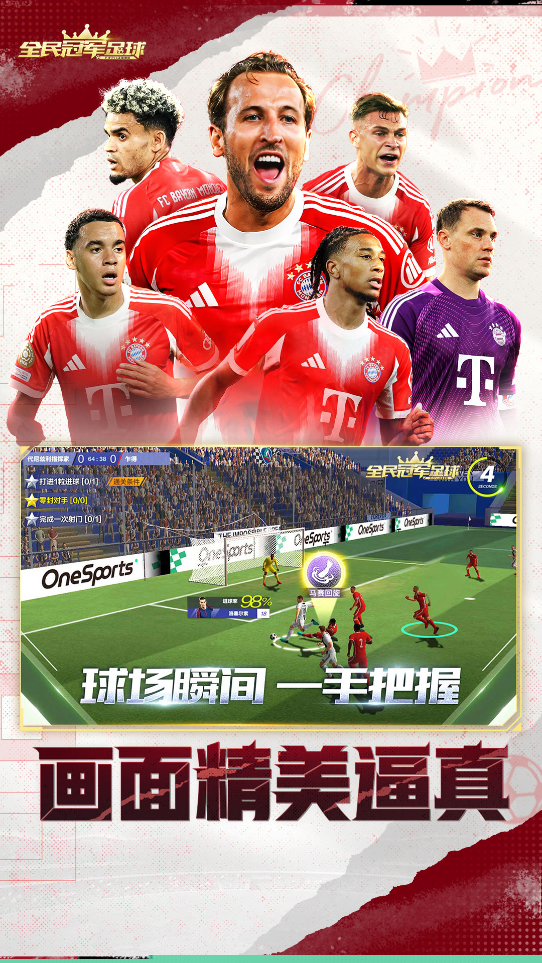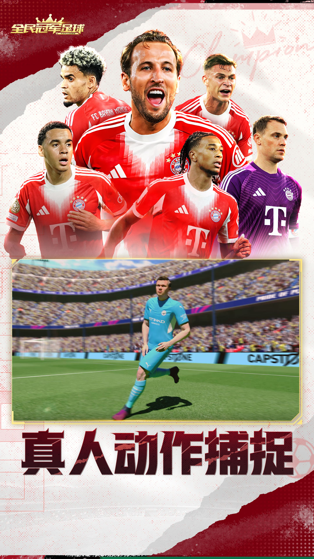 全民冠军足球是一款由FIFPro官方正版授权的策略经营足球手游,汇聚了超过两千名实名注册的真实球员。游戏运用了前沿的惯性及动作捕捉技术,并邀请职业球员参与动作录制,确保了赛场动作的真实还原。除了庞大的球员数据库,游戏还获得了包括皇家马德里、拜仁慕尼黑在内的多家世界顶级足球俱乐部的官方授权。其核心的英雄时刻玩法,为提供了沉浸式的临场操作体验,堪称专为全球足球迷打造的高品质移动端作品。