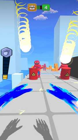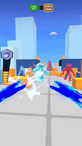 核心体验集中于跑与战的节奏把控。前进过程中,需保持连贯的移动以维持速度加成,面对蜂拥而至的火柴人形机械体时,优先使用范围性元素技能清场,释放烈焰风暴或连锁闪电。面对精英单位或BOSS,则需要观察其攻击前摇,利用瞬移能力进行闪避,并寻找其属性弱点,切换对应克制技能进行输出。