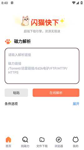 闪猫快下兼容主流的磁力链接、BitTorrent种子文件、迅雷专用链、电驴Ed2k链接以及FTP直连地址。用户几乎可以处理网络上绝大多数P2P资源。