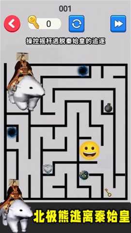逃离秦始皇2是一款融合了历史元素与休闲益智玩法的手机游戏,将扮演一只误入秦始皇陵的北极熊,在充满机关与谜题的复杂迷宫中展开冒险,核心体验围绕观察、解谜与即时反应展开,丰富的关卡设计与独特的文化挑战为带来持续的新鲜感与智力考验。