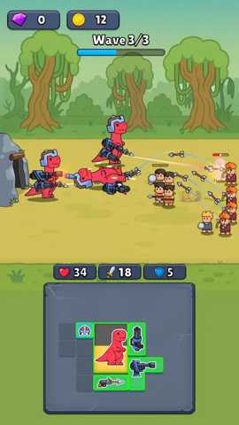 持枪恐龙是一款融合了策略布阵与自动战斗机制的科幻题材移动端作品,其核心在于指挥武装化的史前巨兽抵御人类军团入侵。扮演战场指挥官,在独特的网格化战场上,通过组合恐龙单位与各类现代武器及战术模块,构建个性化的战斗阵列,体验颠覆传统的生存对抗与策略博弈乐趣。