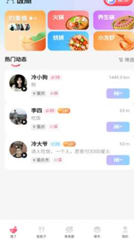 结合LBS技术,向用户推送周边热门或新开的餐厅,并支持在看到推荐后一键创建饭搭子队伍,实现场景化即时社交。