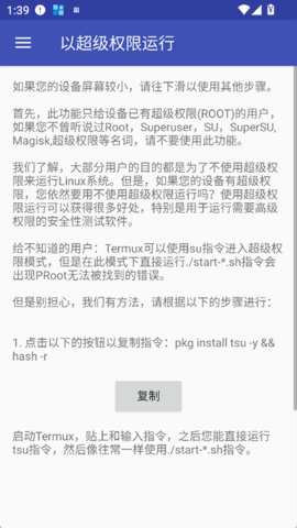整个安装流程高度向导化,用户只需复制粘贴命令,无需深厚的Linux知识背景,使得移动端Linux体验变得触手可及。