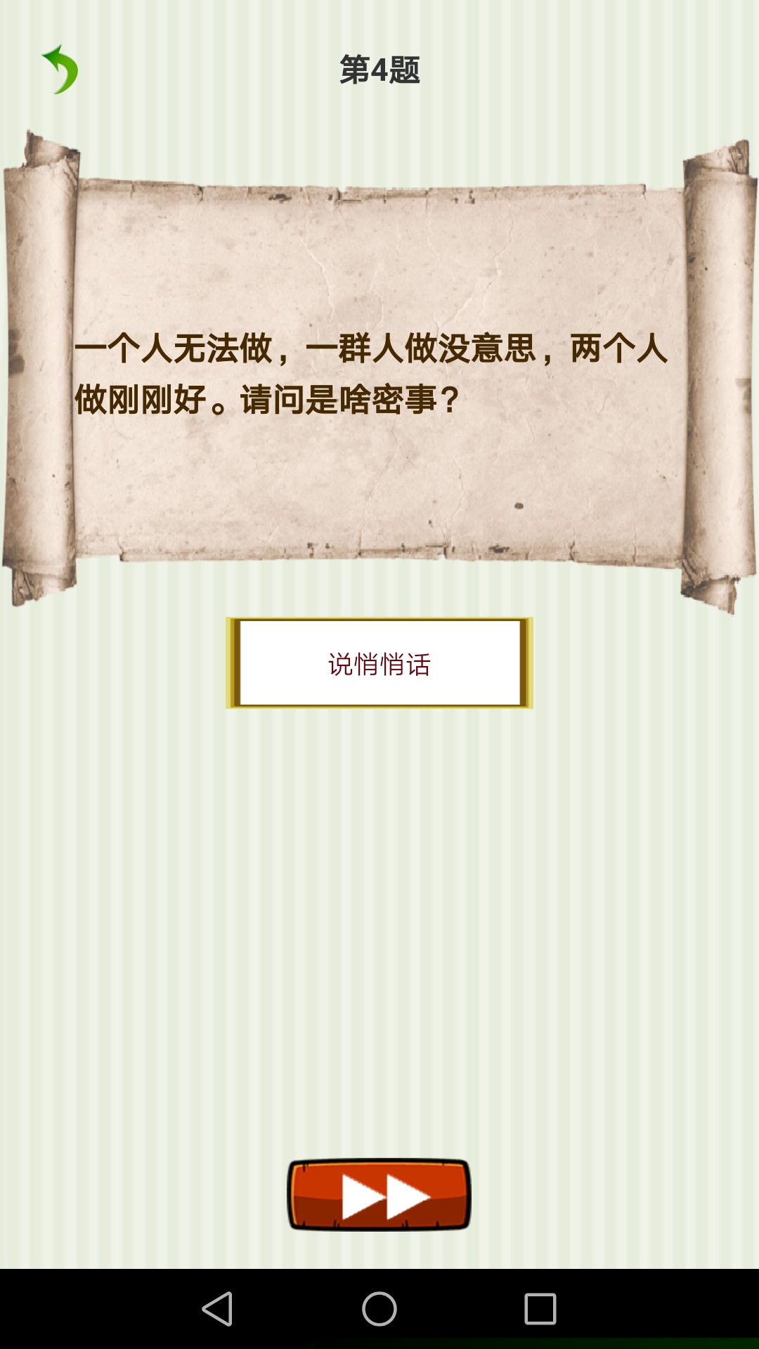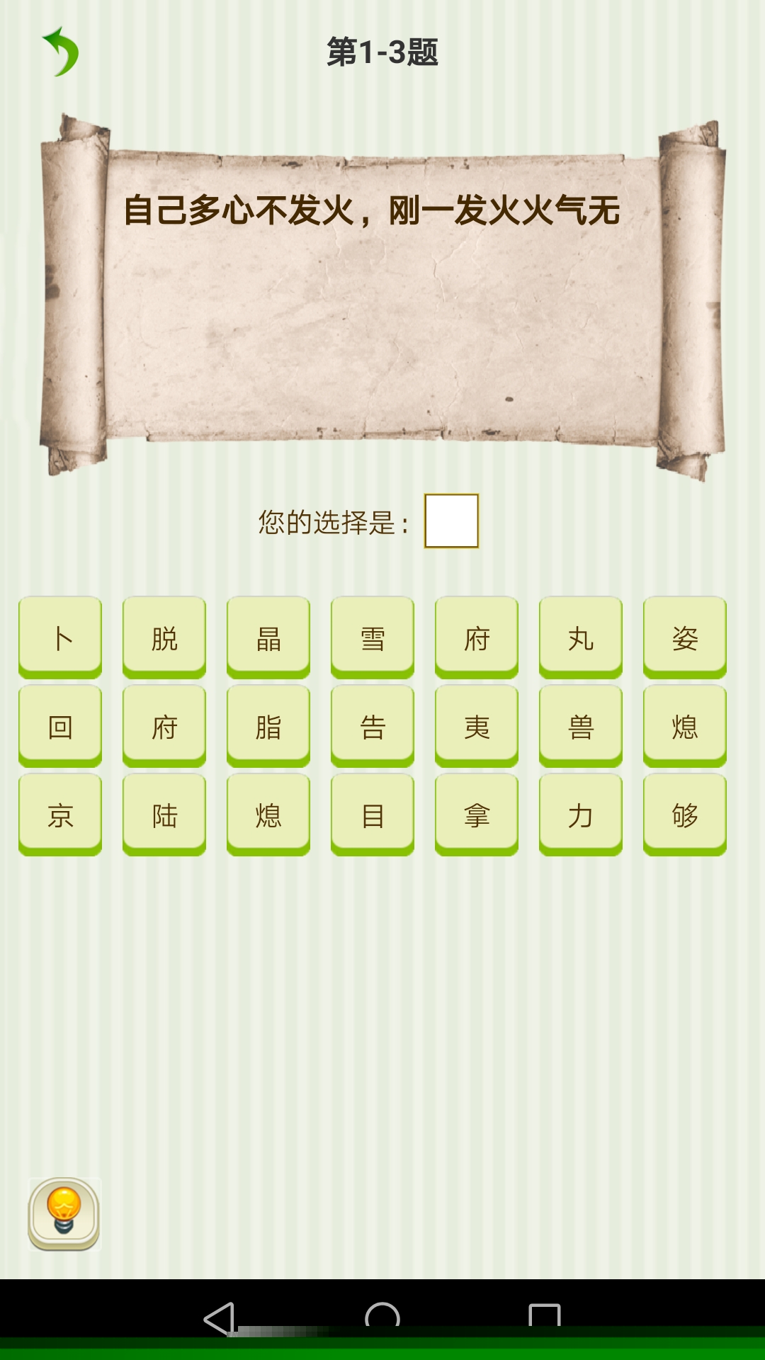 核心体验围绕观察、联想、验证三步循环展开。用户首先需要仔细审视谜面给出的文字、图片或语言提示,这些提示可能指向汉字的部首、笔画、读音或含义。一个关于半部春秋的谜面,就需要将春和秋二字各取一半进行组合。关键在于调动多角度联想,尝试字形拆分、谐音转换、语义双关等多种解谜路径。