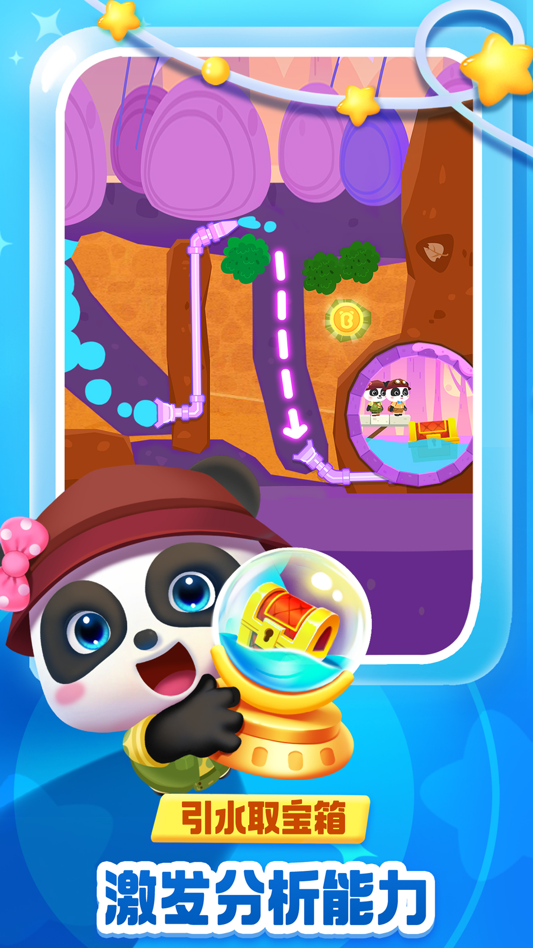 设计戳破水球、引导水流等操作获取宝箱,理解液体特性与简单机械原理。
