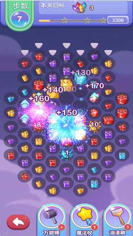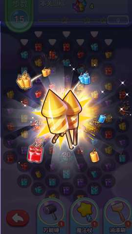 除了常规的分数积累,部分关卡设定了收集特定色彩烟花、在步数限制内点燃烟花筒、或组合出指定图案等目标,驱动玩法持续创新。