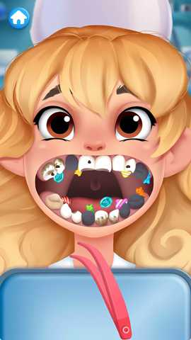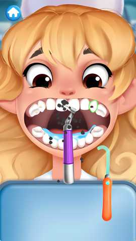 体验流程始于候诊区的角色接待,点击任意一位等待中的患者即可进入核心诊疗空间。首先需要切换口腔内窥视角,系统化检视每一颗牙齿的表面状态与稳固程度,准确判断问题类型是制定后续方案的前提。常见的异常状况主要包括三类:色素沉积形成的牙菌斑、牙体硬组织缺损导致的龋洞、以及处于自然更替期的松动乳牙。