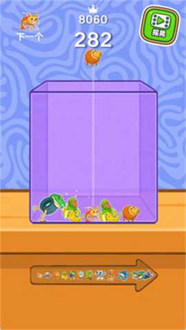 核心体验围绕合成展开。需将两个相同等级的生物拖拽至相邻位置,即可合并进化成更高级的全新物种。每一次合成是战力的提升,更是解锁图鉴的关键。屏幕上方会不断有新的生物单位落下,需要在其落地前,通过拖拽调整其最终位置,为后续的合并连锁创造有利条件。首要目标是清理出足够的棋盘空间,防止其被填满导致游戏结束。