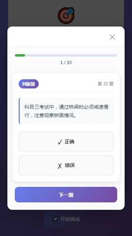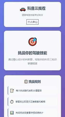 科目三找茬是一款专为机动车驾驶执照考试学员设计的综合性在线学习辅助工具,集成了从科目一至科目四的全套理论题库与模拟实操训练。通过智能算法分析用户学习行为,提供个性化的复习路径与薄弱环节强化方案,帮助学员系统性地掌握交规知识、驾驶技巧及安全常识,从而高效备考,顺利通过各项驾考考核。