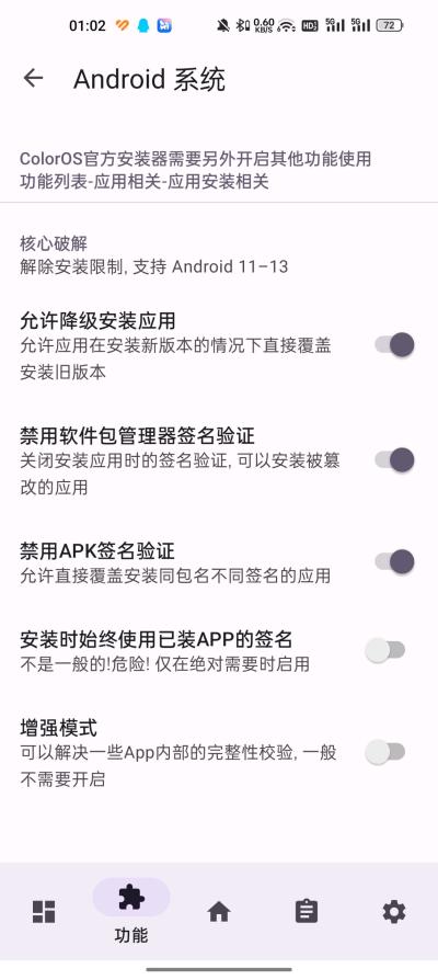 依托Xposed框架实现系统级修改,与ColorOS深度融合,确保功能稳定且高效运行。