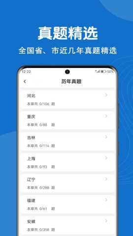 题库设计以全国通用考试大纲为基础,细分了各省市地区的命题特色与新增考点。使用者可根据自身报考地区选择对应的题库模块进行练习,确保内容的全面性与地域针对性。