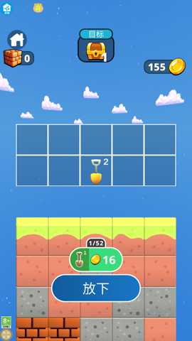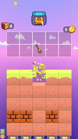核心玩法围绕铁铲的合成与升级展开,收集相同等级的工具可融合为更高级别,显著提升挖掘效率与探索深度。
