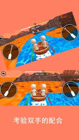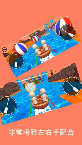 核心玩法建立在两名的即时动作同步之上,要求双方划桨节奏高度一致。