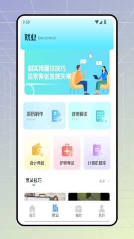职前通就业是一款专注于职业发展与就业能力提升的综合性学习辅助软件,整合了海量的行业知识课程、专业题库以及实用的求职工具,帮助用户系统性地构建专业知识体系,高效备考各类职业资格考试,并全面提升在就业市场中的核心竞争力。软件覆盖了从理论学习到面试实践的全流程,为不同背景的求职者和职场人士提供了一个个性化、一站式的成长软件。